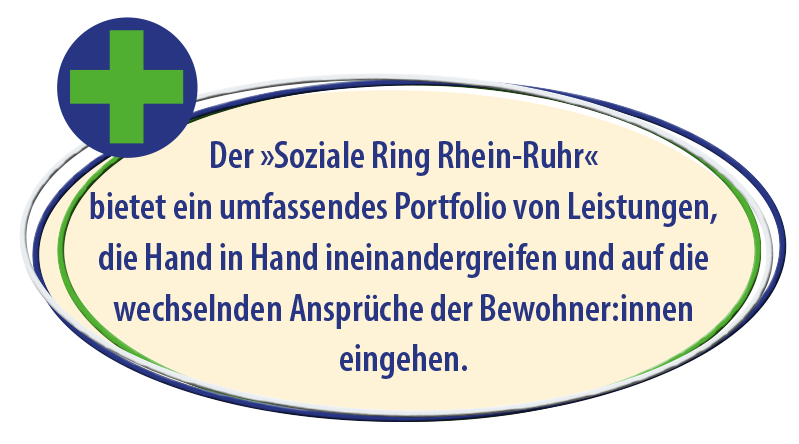 Der »Soziale Ring Rhein-Ruhr« bietet ein umfassendes Portfolio von Leistungen für Senioren, die Hand in Hand ineinandergreifen und auf die wechselnden Ansprüche der Bewohner:innen eingehen.