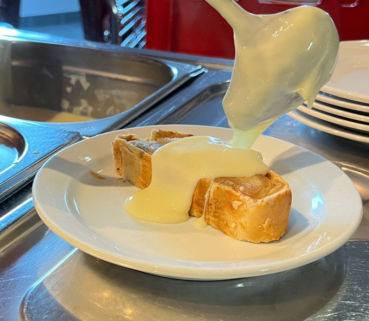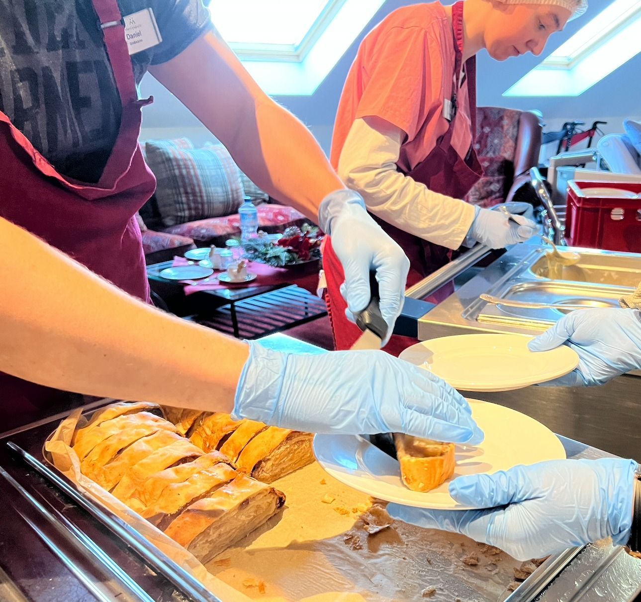 Fast schon traditionell sind einige Vorschulkinder der benachbarten KiTa dabei, die gemeinsam mit dem Team des Sozialen Ring Rhein-Ruhr einige Weihnachtslieder sangen. Hier stimmten sogar die Bewohnerinnen und Bewohner mit ein. Auch das Küchen-Team sorgte an diesem Tag für eine Überraschung, denn neben weihnachtlichem Gebäck wurde auch ein Apfelstrudel mit Vanillesauce gereicht - sehr zur Freude der anwesenden Teilnehmer.