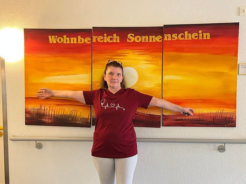 Zu finden ist sie im »Wohnbereich Sonnenschein«. Fast täglich sieht man sie hier über die Flure wuseln, immer bereit für den einen oder anderen wichtigen und notwendigen Handgriff. Gute Laune inklusive. Diese verbreitet sie auch gerne bei den Bewohnerinnen und Bewohnern.