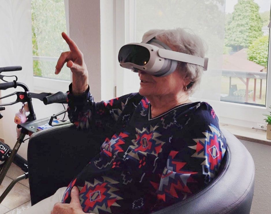 Menschen mit einer Demenz profitieren sehr von dieser Form der Erinnerungsreise. Doch auch Menschen mit einer eingeschränkten Mobilität können dieses Angebot wahrnehmen. Die Leiterin des Sozialen Dienstes bringt es auf den Punkt: „Die VR-Brille wird für unsere Arbeit zu einem bedeutenden Werkzeug. Dabei ist sie mehr als Unterhaltung: Sie fördert Wohlbefinden, Gemeinschaft und geistige Aktivität.“
